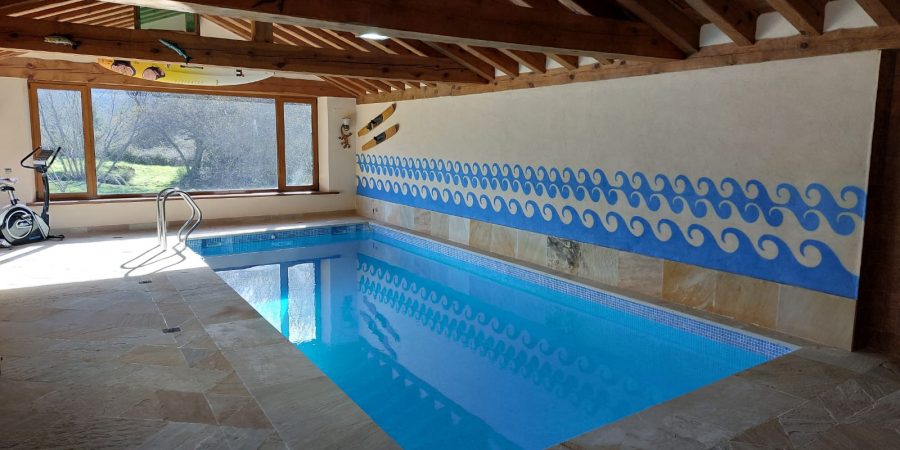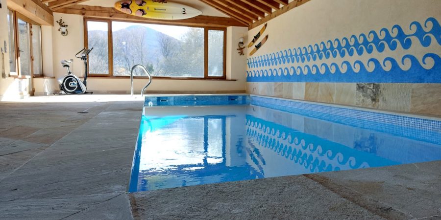 Piscina disponible todos los días del año. Climatizada durante los meses fríos rodeada de tranquilidad y conectada al salón principal.
