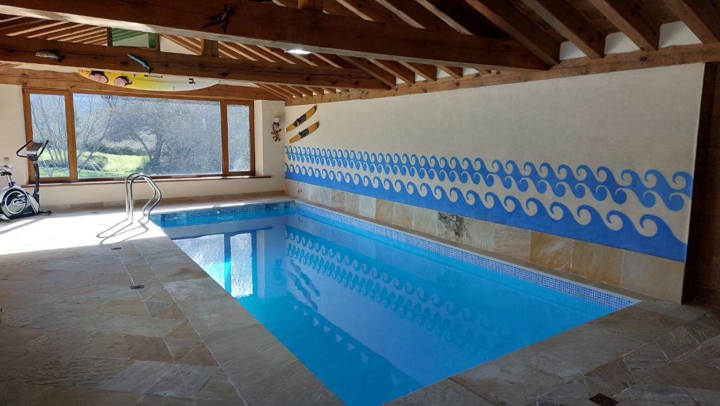 La piscina está climatizada, por lo que es necesario que, entre dos personas, retiréis la manta térmica azul para bañaros y la volváis a poner cuando terminéis el baño para ayudar a mantener buena temperatura del agua.